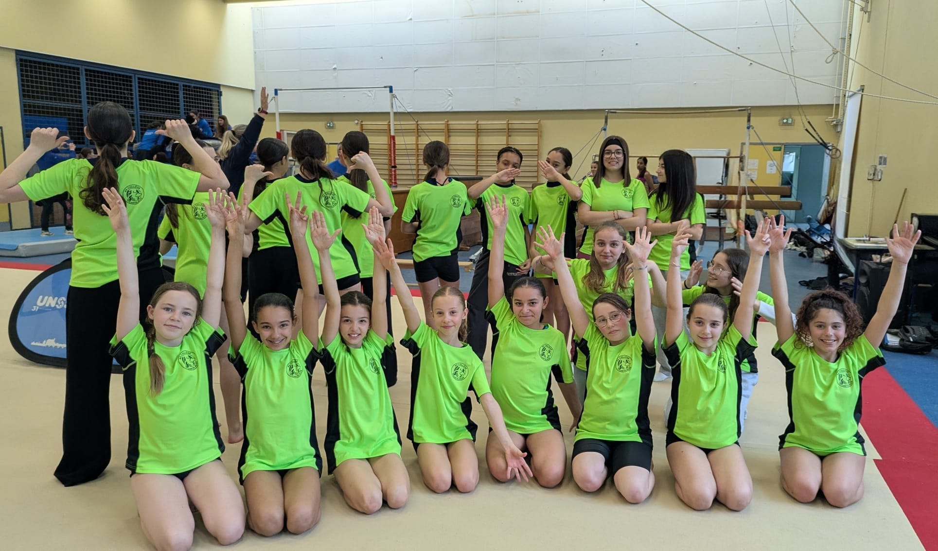 Nos élèves ont découvert une vraie salle de gymnastique, ont affronté les collèges de Nailloux, du Vernet et de Frouzins et ont fait de la gymnastique toute la journée au gymnase de l'université Paul Sabatier à Toulouse.