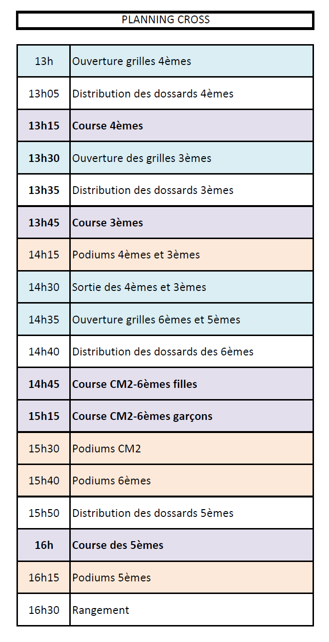 Le cross des CM2 et élèves du collège se déroulera vendredi 17 Octobre après-midi