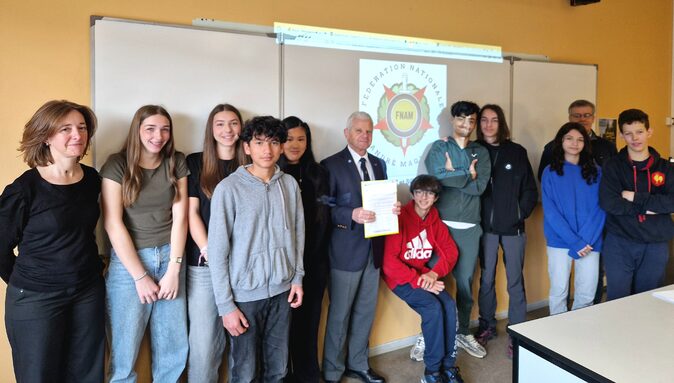 Par MARIE CHAUVEAU, publié le dimanche 4 mai 2025 12:56 - Mis à jour le dimanche 4 mai 2025 12:56Le général PETER, président de la Fédération André Maginot, a remis au nom de son association un chèque de 1000 euros au collège pour soutenir le voyage Anglais Histoire et mémoire des classes de troisième. -