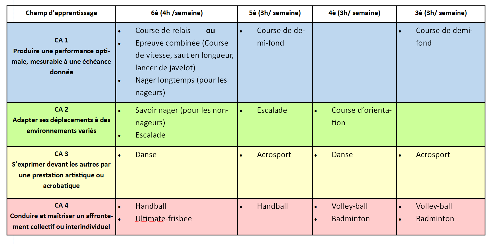 Vous trouverez ci-dessous la programmation des activités physiques et sportives du collège