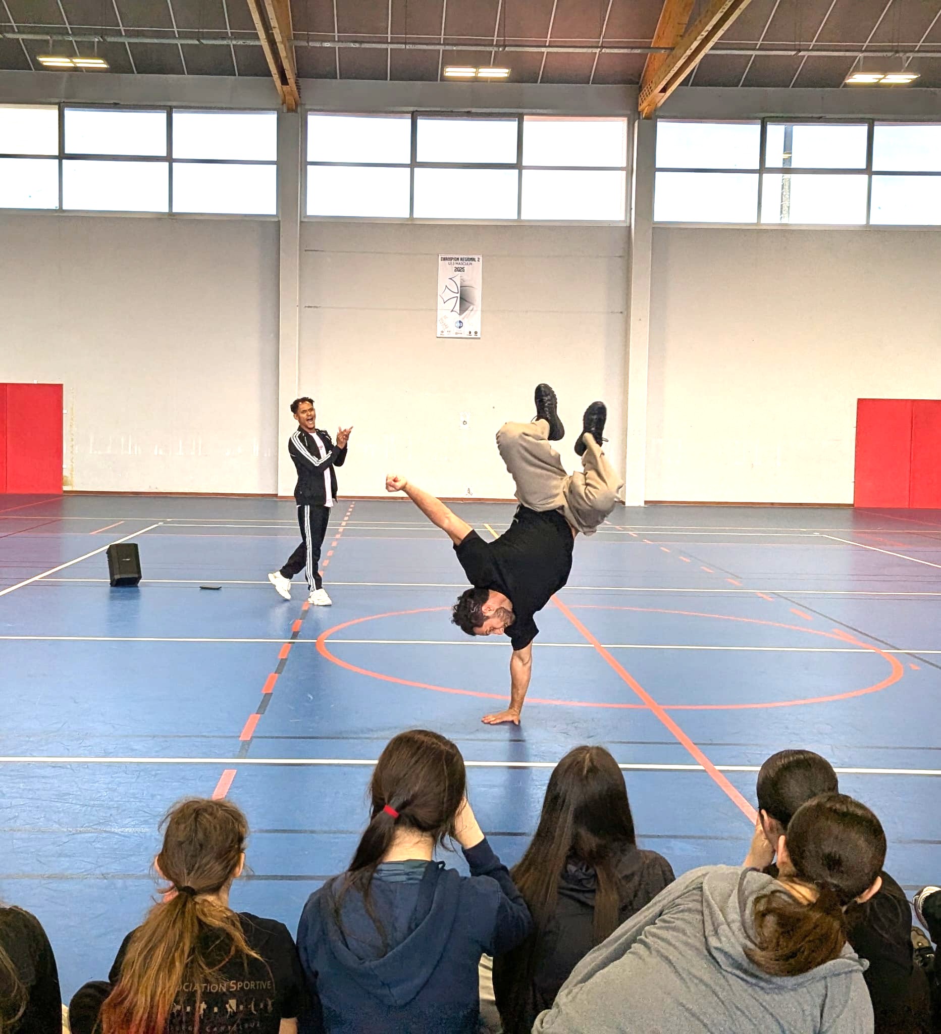 Pour clôturer la séquence de danse et apporter des nouvelles techniques, nous avons dansé avec eux, fait des battle, puis ils ont réalisé une démonstration très acrobatique et impressionnante.