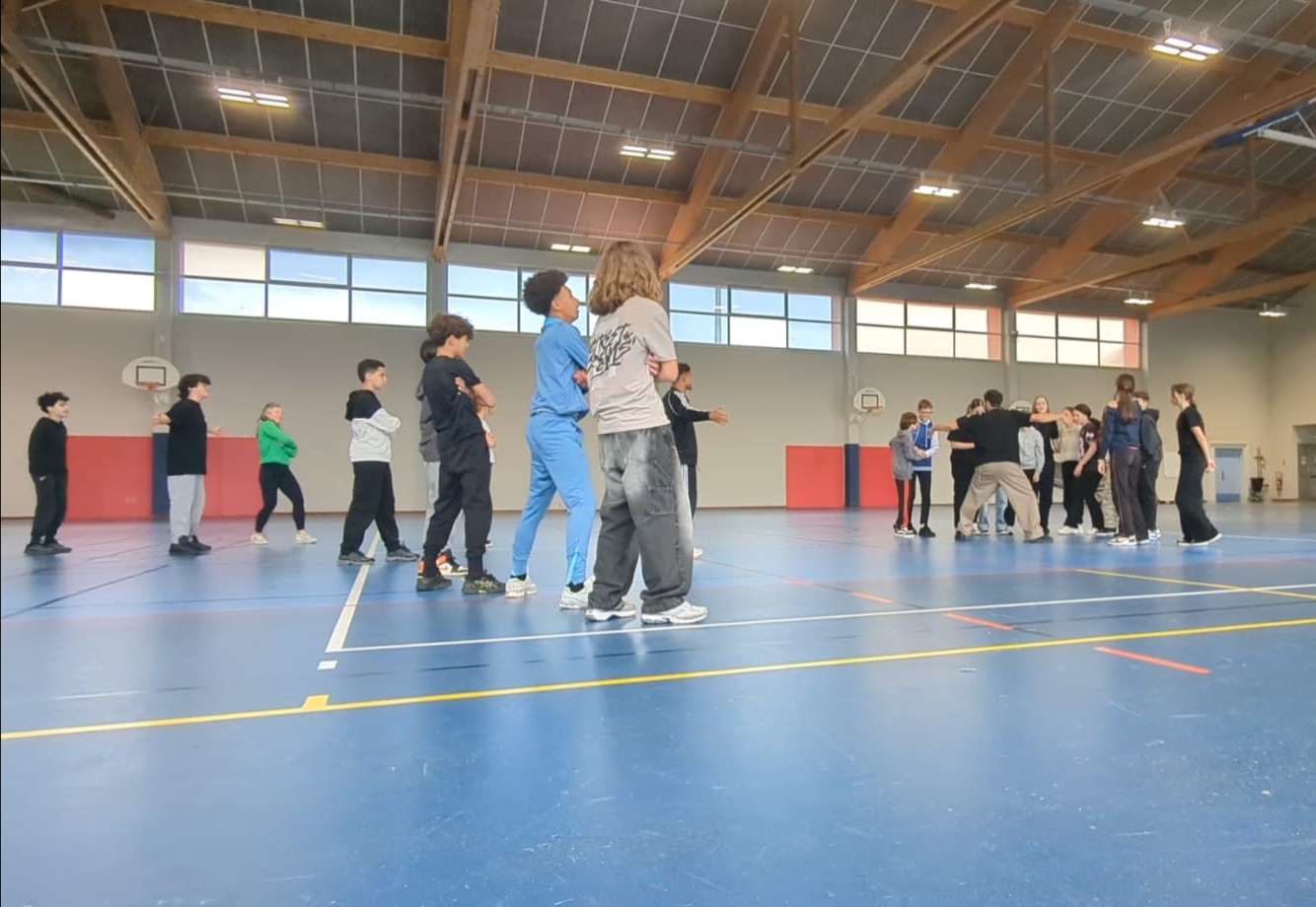 Des danseurs de la compagnie "surprise effect" son venus passer 2 heures au gymnase avec les élèves de 4èF.